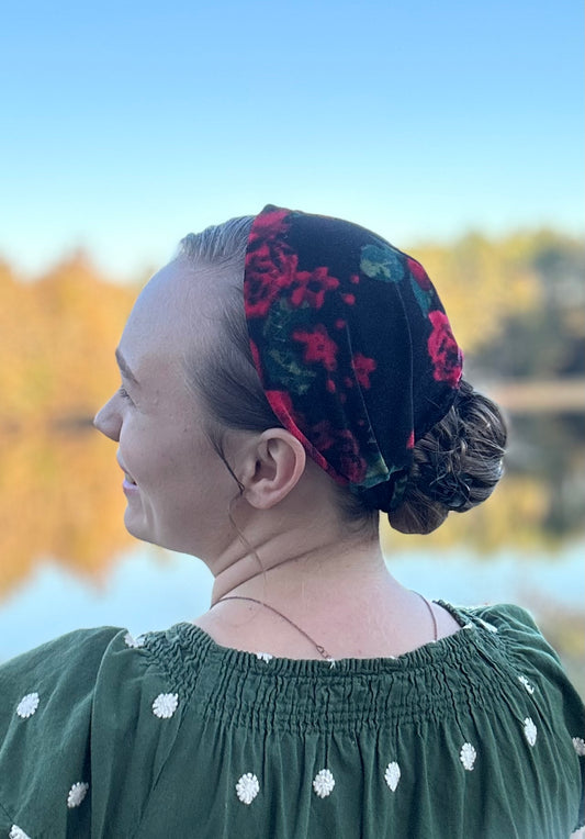 Black Lace Velvet Headband Covering